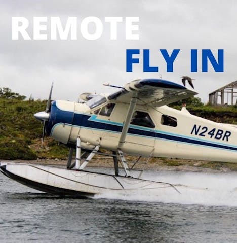 - 1 hour float plane flight from King Salmon, Alaska